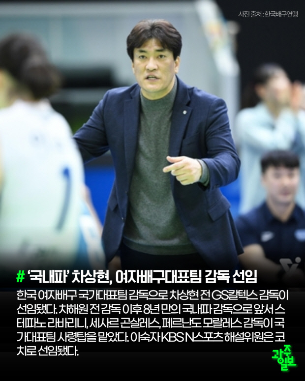 한국 여자배구 국가대표팀 감독으로 차상현 전 GS칼텍스 감독이 선임됐다. 차해원 전 감독 이후 8년 만의 국내파 감독으로 앞서 스테파노 라바리니, 세사르 곤살레스, 페르난도 모랄레스 감독이 국가대표팀 사령탑을 맡았다. 이숙자 KBS N스포츠 해설위원은 코치로 선임됐다.