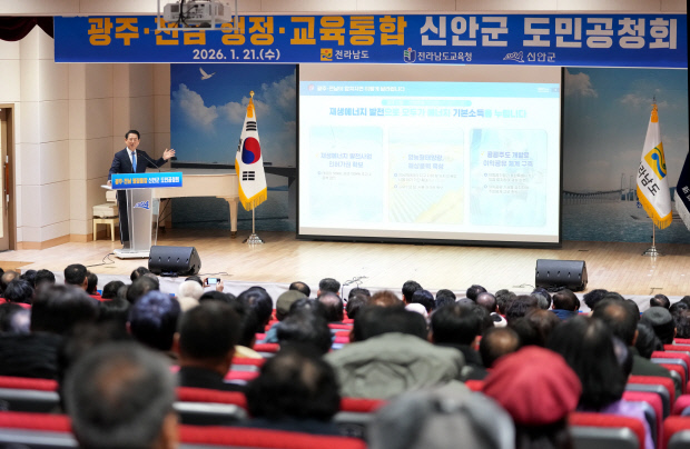 이날 신안군에서 열린 전남도와 전남도교육청 주관의 행정통합 공청회에서 주민들은 수익금 감축을 우려했다.