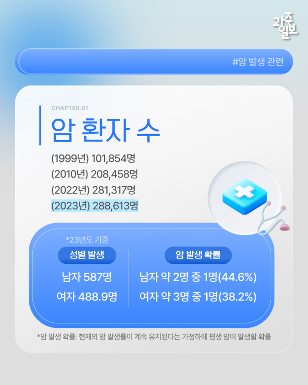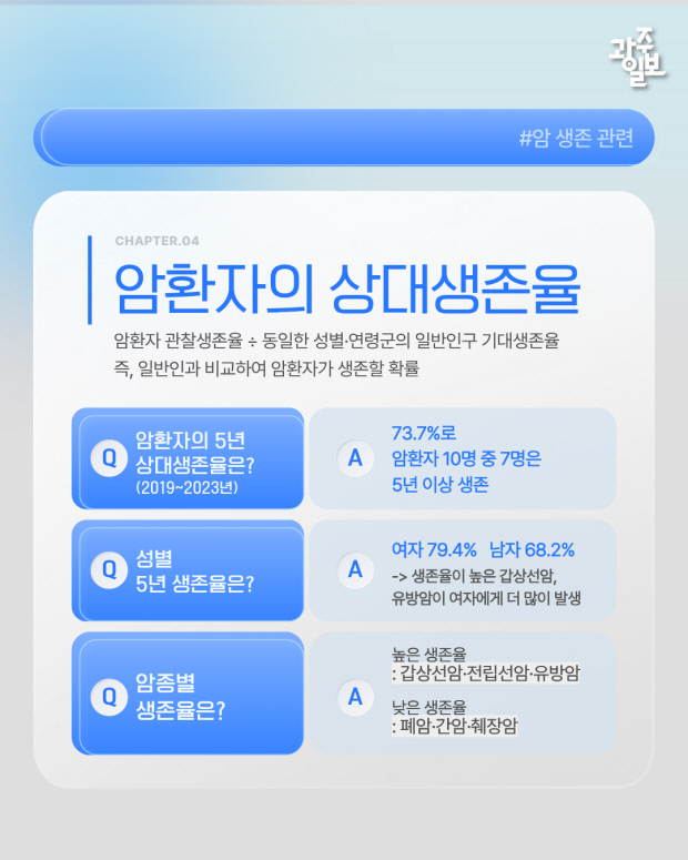 [광클] 암환자 273만 명 시대, 10명 중 7명은 5년 이상 생존