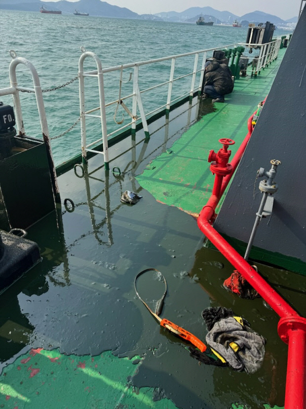 A호는 지난 23일 오후 1시 30분께 여수시 한 묘박지에서 석유제품 운반선 B호(190t급)로부터 연료유를 전달받던 중 기름을 해상에 유출한 것으로 확인됐다.