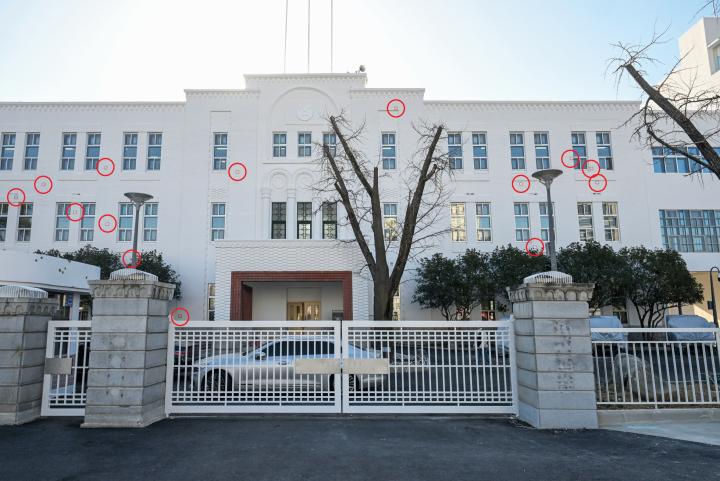 옛시설 복원 공사를 마친 광주시 동구 옛 전남도청 본관 외벽에 1980년 당시 새겨진 총탄으로 의심되는 탄흔 20개(원 안)가 남아있다. 옛 전남도청 복원추진단은 총탄 의심 흔적 중 탄흔으로 확인된 지점 15곳에는 빨간색, 탄흔으로 의심되는 지점에는 노란색 표시를 해 오는 4월 5일부터 시민에게 공개할 방침이다.