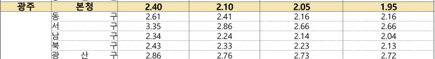 광주 2.4%·전남 2.29%로 평균 밑돌아