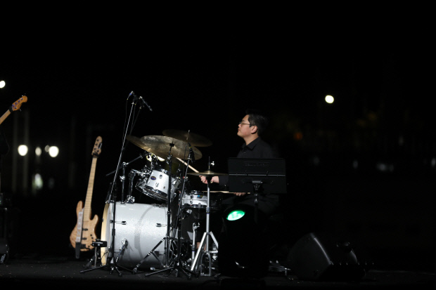 | 화순 출신 드러머 신원주 씨는 “화순만의 재즈가 뿌리내릴 수 있도록 그 기반을 닦는 데 기여하고 싶다”고 말했다. 신 씨가 직접 기획에 참여하고 무대에 오른 ‘남도 재즈 페스티벌 in 화순’ 공연 장면. <두루아트 제공> |