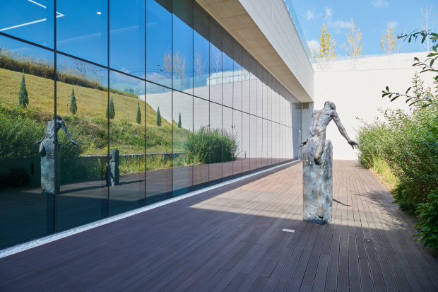 관람객들은 길게 이어지는 전시장 복도 안 의자에 앉아 유리창을 통해 바깥 정원과 작품을 감상하게 된다. 마치 액자 속에 담긴 작품을 보는 듯한 느낌이 드는데, 마음 내키면 문을 열고 밖으로 나가 바람을 맞으며 자연 속에 설 수도 있다.
