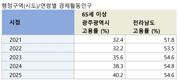 65세 이상 고용률 광주 40.2%·전남 54.6%