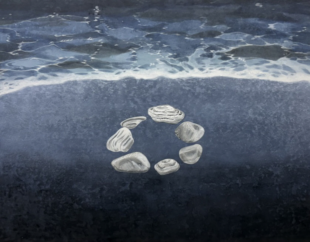 권예솔의 ‘누구의 것도 아닌 녹음’은 어디에서나 볼 수 있을 법한 들판과 숲을 초점화했다. 웃자란 잡풀, 무질서하지만 나름의 질서를 이루며 숲을 형성한 나무들은 특유의 녹음으로 가득하다. 특정한 누구의 소유가 아닌 자연의 것이라는 사실을 작가는 은유적으로 말한다.