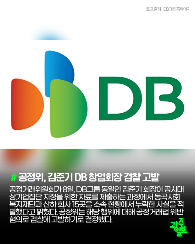 공정거래위원회가 8일, DB그룹 동일인 김준기 회장이 공시대상기업집단 지정을 위한 자료를 제출하는 과정에서 동곡사회복지재단과 산하 회사 15곳을 소속 현황에서 누락한 사실을 적발했다고 밝혔다. 공정위는 해당 행위에 대해 공정거래법 위반 혐의로 검찰에 고발하기로 결정했다.