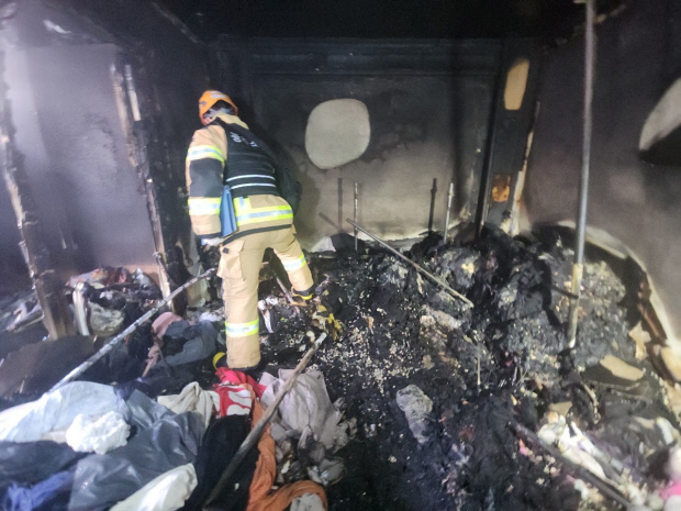 2층 한 세대(30㎡)가 전부 불에 타고 윗층 그을음 등 소방추산 2625만여원의 재산피해가 발생했다.