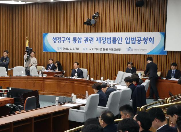 국회 행정안전위원회는 9일 본관 제3회의장에서 ‘행정구역 통합 관련 제정 법률안에 대한 입법공청회’를 개최했다.