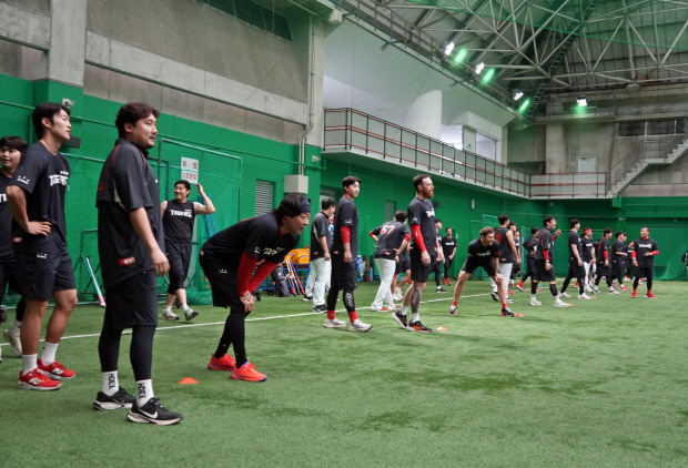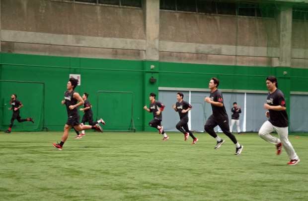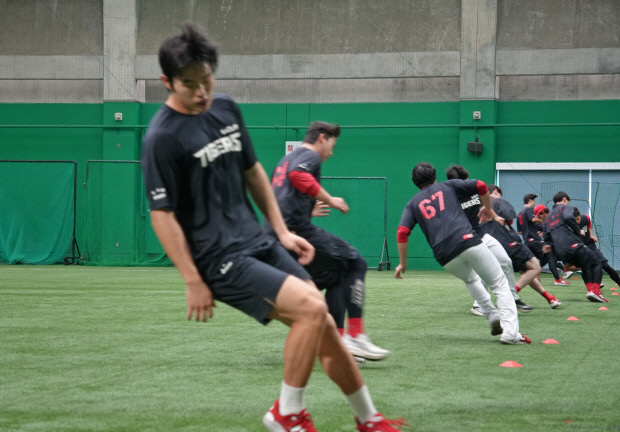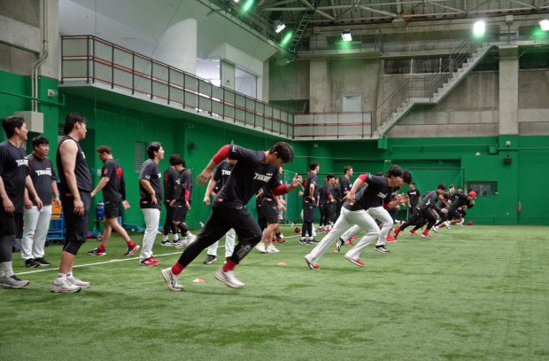 광주에 폭설이 내렸던 지난주 아마미에도 비바람이 찾아왔습니다. 실외 훈련에 차질이 빚어졌지만 선수들은 실내 연습장에서 수비훈련과 러닝 훈련 등을 하면서 시즌 준비를 이어갔습니다.