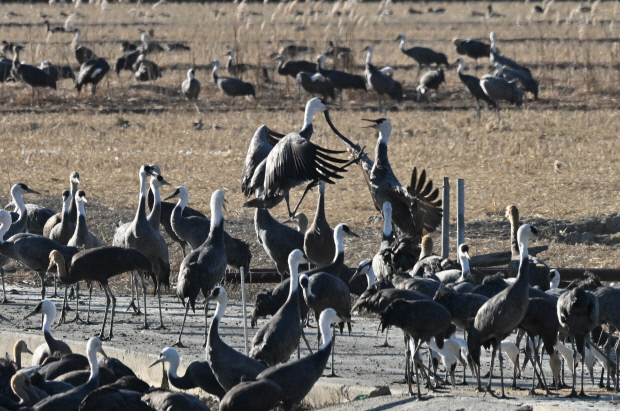 한동안 먹이에 집중하던 흑두루미 무리 가운데 몇 마리가 동시에 고개를 들었다. 곧 무리는 미묘하게 방향을 바꾸며 조심스레 자리를 옮긴다. 바로 옆에서 갑작스러운 움직임이 느껴진다. 시선을 돌리자 독수리 여러 마리가 한데 엉켜 있고 순간 허공에 흩날리는 깃털을 본 것 같다. 탐조객들 사이에 정적이 흐른다. 하늘에서는 또 다른 독수리 한 마리가 다음 타깃을 찾는 듯 원을 그리며 선회하고 있었다. 자연의 질서가 고스란히 드러나는 곳, 순천만 습지의 겨울 풍경이다.
