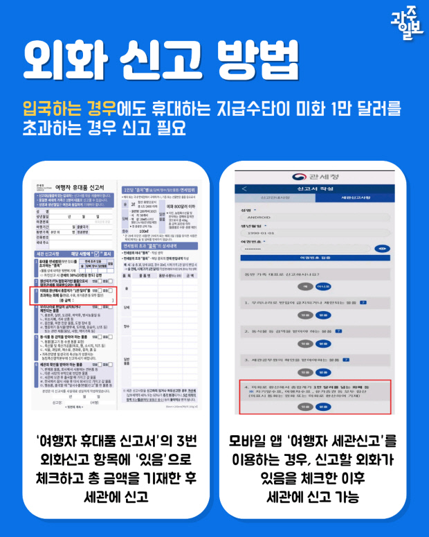 [광클] 해외여행 시 1만 달러 초과 현찰은 반드시 신고하세요!
