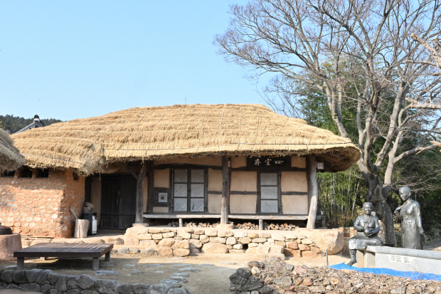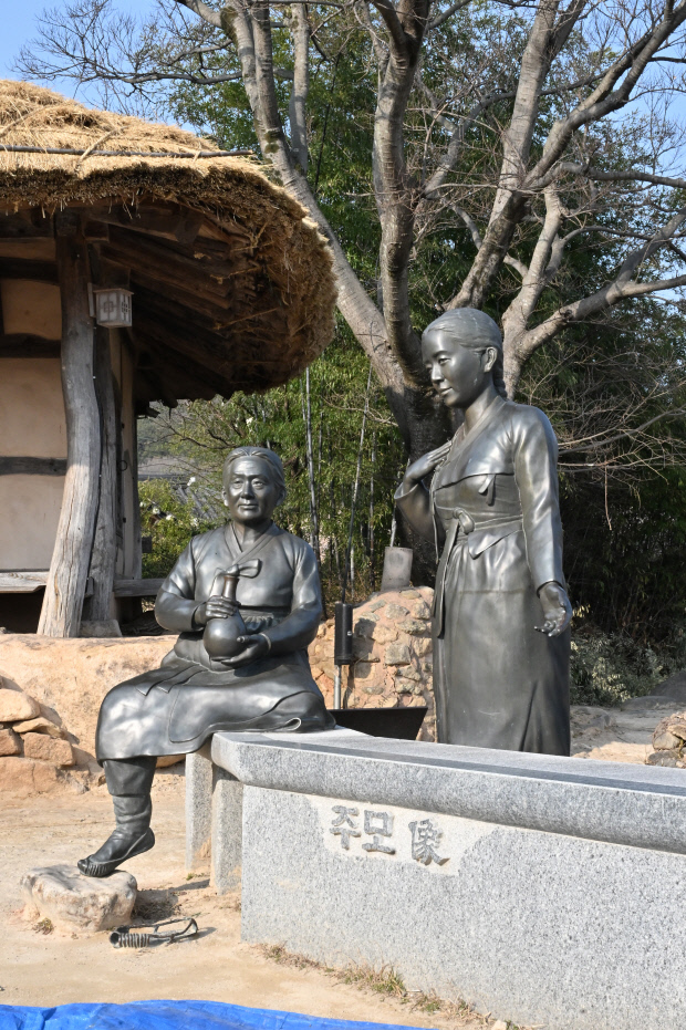 | 사의재 초가집 마당에 세워진 주막 할머니 동상. |