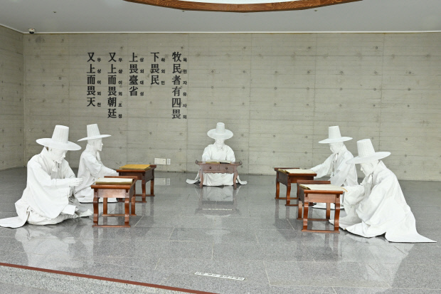| 다산박물관 로비. 다산이 제자들을 가르치던 모습이 전시돼 있다. |