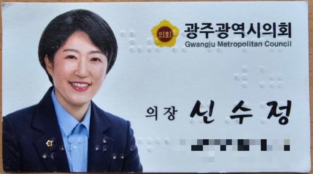 | 신수정 광주시의회 의장 명함 사진, <신수정 의원 측 제공> |