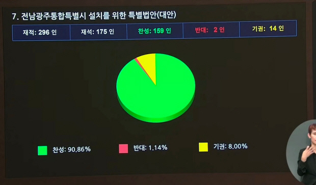 이로써 ‘전남광주특별시 설치 등에 관한 특별법안’은 3월 1일 국회 본회의에서 재석 175인 중 찬성 159인, 반대 2인, 기권 14인으로 가결됐다. 두 달간 숨 가쁘게 이어진 선언과 협의, 공청회와 정쟁의 과정을 거쳐 광주·전남 행정통합은 입법이라는 결정적 관문을 넘게 됐다.