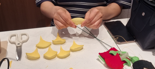 한 지인은 아이가 다니는 학교 자모들과 함께하는 동아리 활동으로 종이꽃을 만드는 수업을 듣기 시작했다. 주름지와 색지를 자르고 접어 꽃잎을 하나씩 완성하는 작업은 생각보다 느리고 섬세한 과정이었다. 처음에는 단순한 취미로 시작했지만 손을 움직이는 동안 잡념이 줄어들고 시간이 가는 줄 모를 만큼 몰입하게 됐다고 했다.