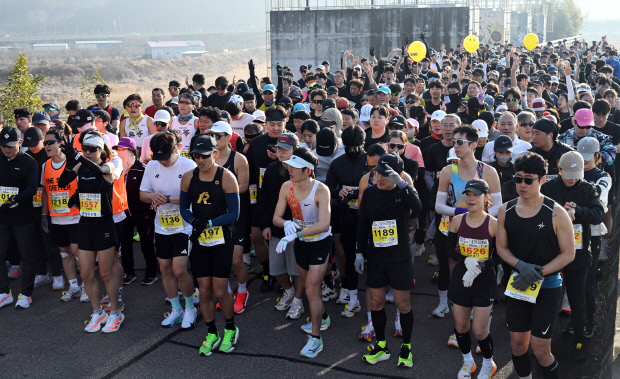 | 대회에 참가한 마라토너들이 출발 준비를 하고 있다. |