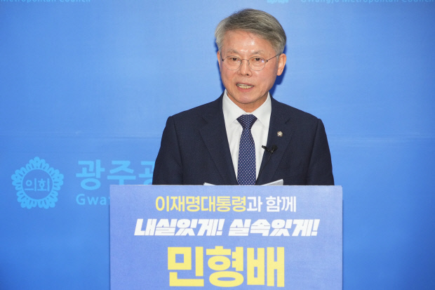 민 예비후보는 3일 광주시의회 브리핑룸에서 기자회견을 열고 “통합특별시 특별법 통과를 계기로 전남광주에 더 큰 글로벌 초첨단 기업을 모시는 전략적 대전환을 시작하겠다”며 “시정부가 전략적 투자자로 나서 기업의 성장을 돕고, 그 결실을 시민의 생애 소득으로 되돌려주는 새로운 경제 생태계를 구축하겠다”고 선언했다.