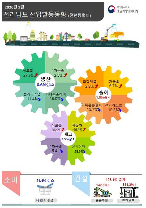 | 2026년 1월 전남도 산업활동동향<호남지방데이터청 제공> |