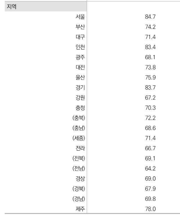 정보통신기기 유형별로 보면 전남지역 스마트기기 보유율(스마트폰 포함)은 97.6%로, 역시 17개 시·도 중 가장 낮았다. 노트북 컴퓨터(45.7%)나 데스크톱 컴퓨터(44.4%)를 가진 가구는 절반도 되지 않았다.