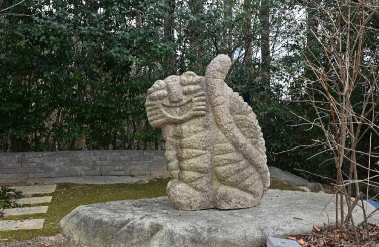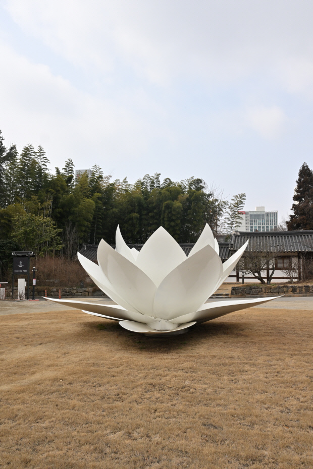 | 무각사 갤러리 앞에 설치된 재독작가 김현수의 ‘백련’ 조형물. |