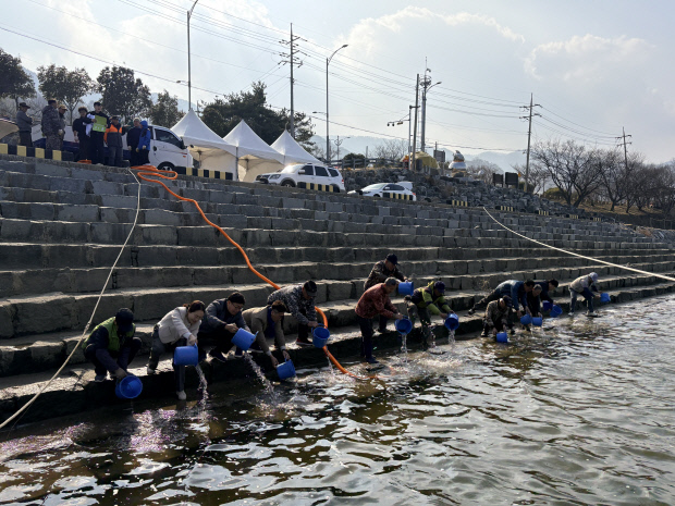 이날 방류 행사에는 지역 주민과 공무원 등 30여 명이 참여해 어린 은어를 강에 풀어놓으며 건강한 하천 생태계 조성에 힘을 보탰다. 방류된 은어는 수산생물 전염병 검사를 통과한 전장 5㎝ 이상의 건강한 개체들로, 자연환경에 적응할 수 있도록 선별된 종자다.