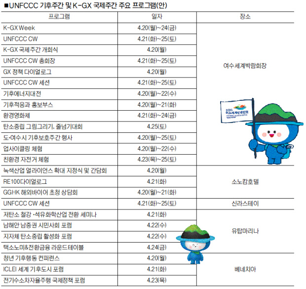‘유엔기후변화협약 기후주간’(UNFCCC Climate Week) 행사는 전 세계를 순회하며 지역별로 열리는데 올해 아시아 지역 기후주간의 개최지로 우리나라가 최종 확정된 데 따라 오는 4월 21일부터 25일까지 5일간 여수세계박람회장 일대에서 열린다.