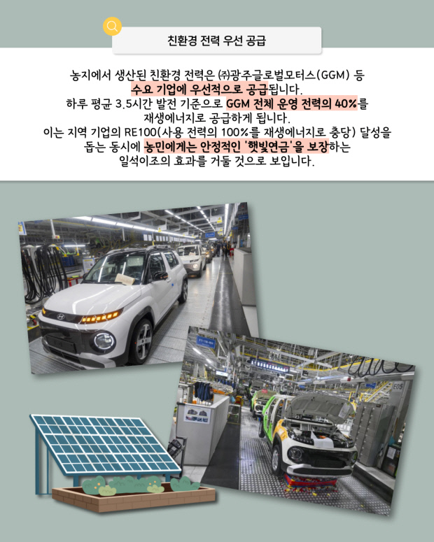 생산된 전력은 광주글로벌모터스(GGM) 등에 공급돼 기업의 재생에너지 사용 확대에도 기여할 전망이다.