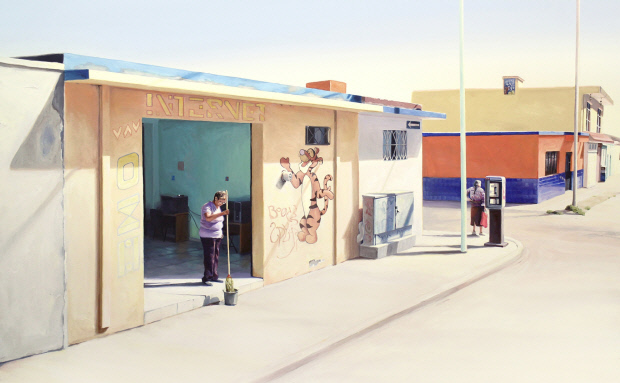 안소현 작가는 고요한 풍경과 정서적 울림을 내재한 그림으로 다양한 도서의 표지를 장식해 왔다. ‘다 괜찮을 거야!’는 어느 소읍의 거리와 같은 풍경을 통해 일상성의 중요함, 내면의 단단함 등을 묘사한 듯하다.