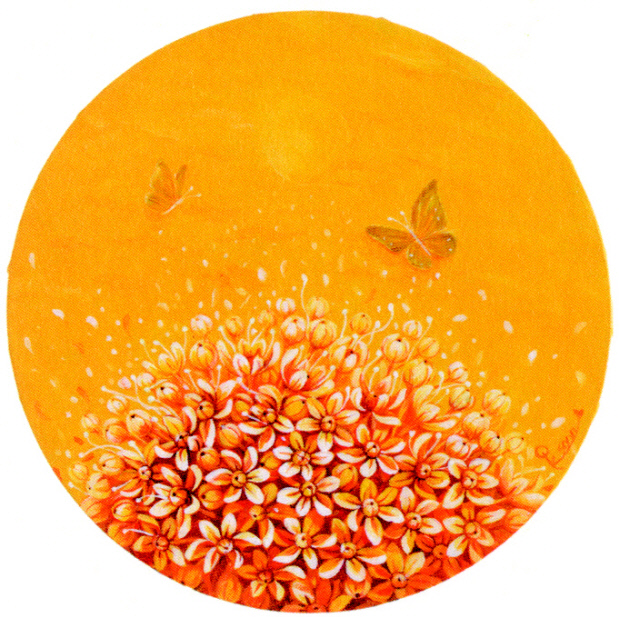 ‘양파꽃 위의 시간’을 주제로 펼쳐지는 이번 전시는 하나의 꽃송이에 수많은 꽃들이 어우러지는 양파꽃을 초점화했다. 전시실에서 만나는 17개 작품은저마다 화려한 색감으로 보는 눈을 즐겁게 한다. 꽃대에 달린 꽃은 우주의 행성과 같은 아우라를 발한다.